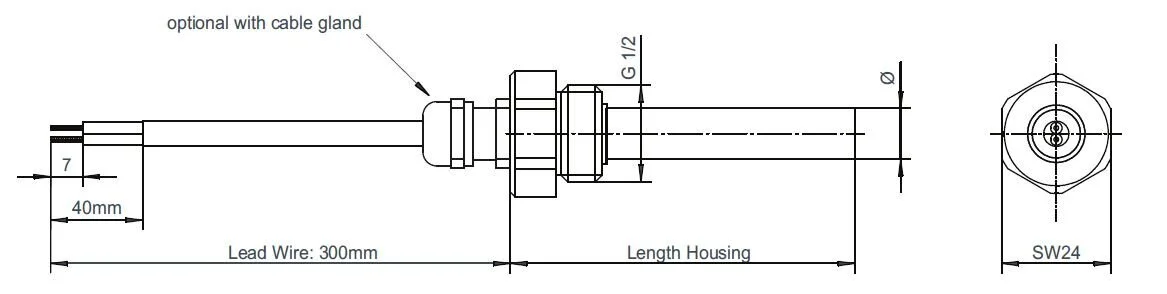 Corrosion resistant stainless steel housing with G1/2 thread and hexagon